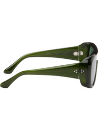 Handcrafted aviator-style semi-transparent acetate-frame sunglasses in green. · Green lens · 100% UVA/UVB protection · Integrated nose pads · Rivets at temples · Exposed core wires · Includes pouch · Size: 52.22 135 Part of the exclusive SSENSE HEAT capsule. Supplier color: Green/Green Acetate. Made in Japan 252458F005003