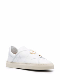 button-embossed slip-on sneakers Highlights - White - Vegan leather - Embossed gold-tone buttons - Tonal stitching - Round toe - Slip-on style - Flatform sole Made in Italy Composition Other fibres 100% SIZE & FIT Measurement HEEL 1.18 in(3 cm) Sole height 0.98 in(2.5 cm) Washing instructions Do Not Wash/Do Not Dry Clean