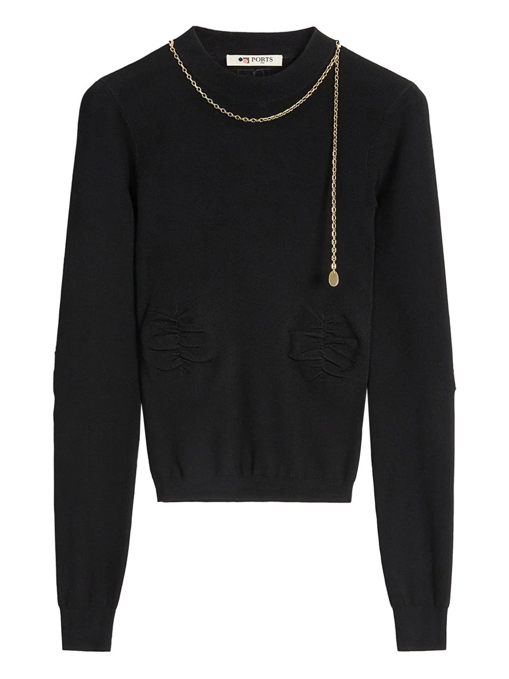 chain-embellished top Highlights - Black - Chain detail - Long sleeves - Round neck Imported Composition Viscose 83%, Polyester 17% Washing instructions Read Manufacturer Guidelines