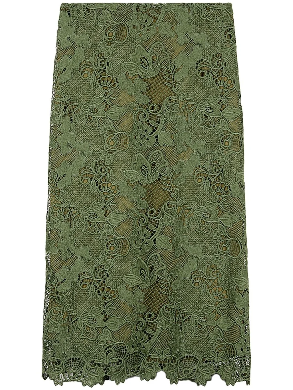 Chantilly-lace skirt Highlights - Green - High-waisted - Full lining - Scallop hem - Mid-length Imported Composition Polyester 100%