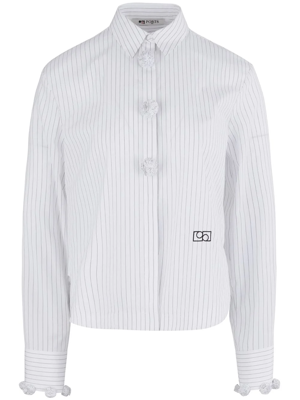 Charming pompom shirt Highlights - White/black - Cotton - Vertical stripe pattern - Pompom detail - Concealed front fastening - Classic collar - Long sleeves - Buttoned cuffs - Logo print to the front - Curved hem Imported Composition Cotton 100%