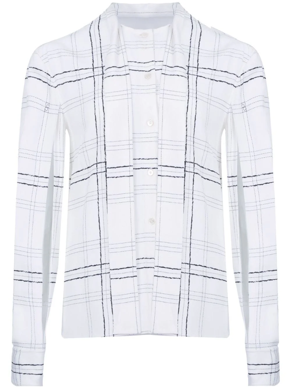 checked tie-strap shirt Highlights - White/black - Stretch-design - Poplin texture - Check pattern - Tie strap - Front button fastening - Round neck - Scarf detailing - Long sleeves - Buttoned cuffs - Straight hem Imported Composition Viscose 100%, Elastane 100%