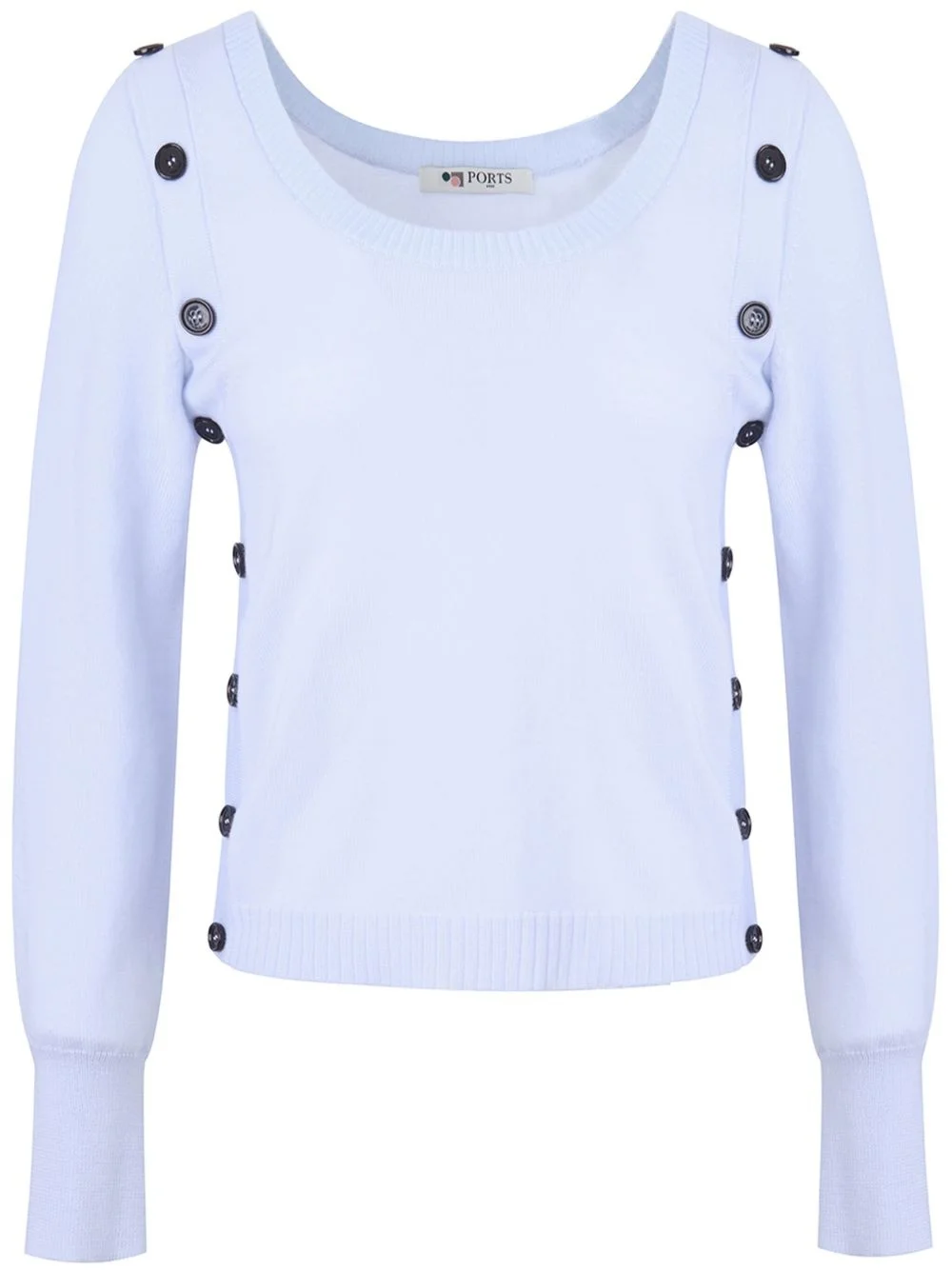 contrast-buttons jumper Highlights - Ice blue - Wool - Contrast button detailing - U-neck - Long sleeves - Ribbed cuffs and hem - Logo tag Imported Composition Wool 100%