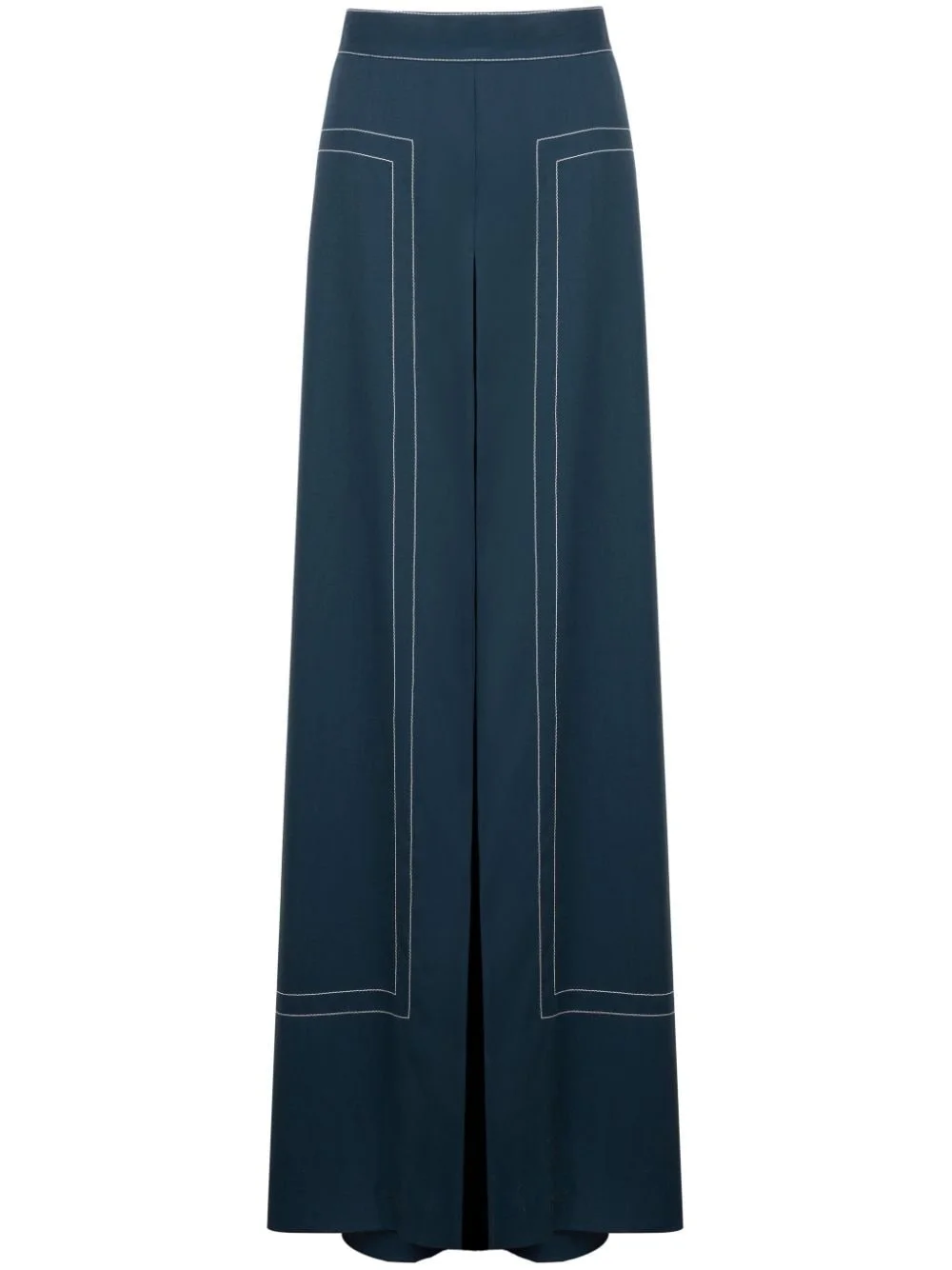 contrast-stitching trousers Highlights - Navy blue - Stretch-wool - Contrast stitching - Elasticated waistband - High-waisted - Two side slit pockets - Tailored cut - Wide leg Imported Composition Wool 99%, Elastane 1%