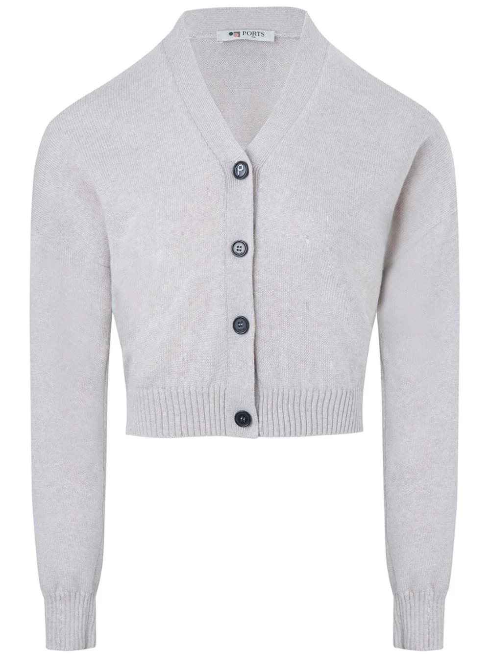 cropped cardigan Highlights - Grey - Wool - Front button fastening - V-neck - Long sleeves - Ribbed cuffs and hem - Internal logo patch - Cropped Imported Composition Wool 100%