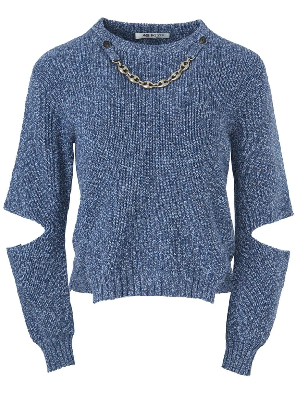 cut-out jumper Highlights - Cerulean blue - Wool-cotton blend - Chunky knit - Cut-out detailing - Crew neck - Long sleeves - Ribbed cuffs and hem Imported Composition Wool 72%, pure cotton 28%