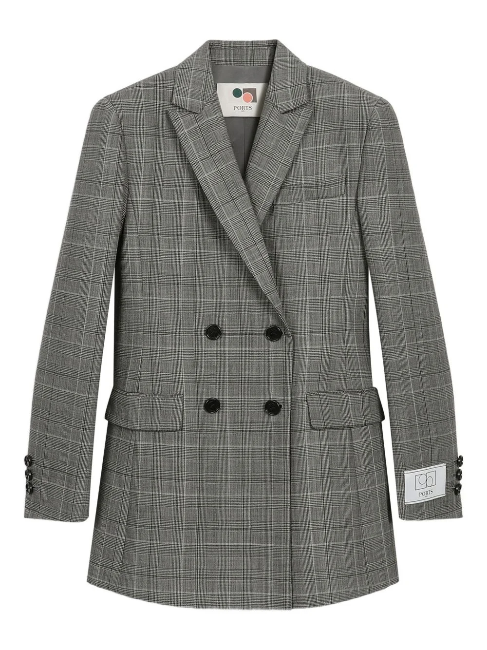 double-breasted checked blazer Highlights - Grey - Check pattern - Notched lapels - Double-button front - Flap pockets - Buttoned cuffs Imported Composition Eco Wool 100% Washing instructions Read Manufacturer Guidelines