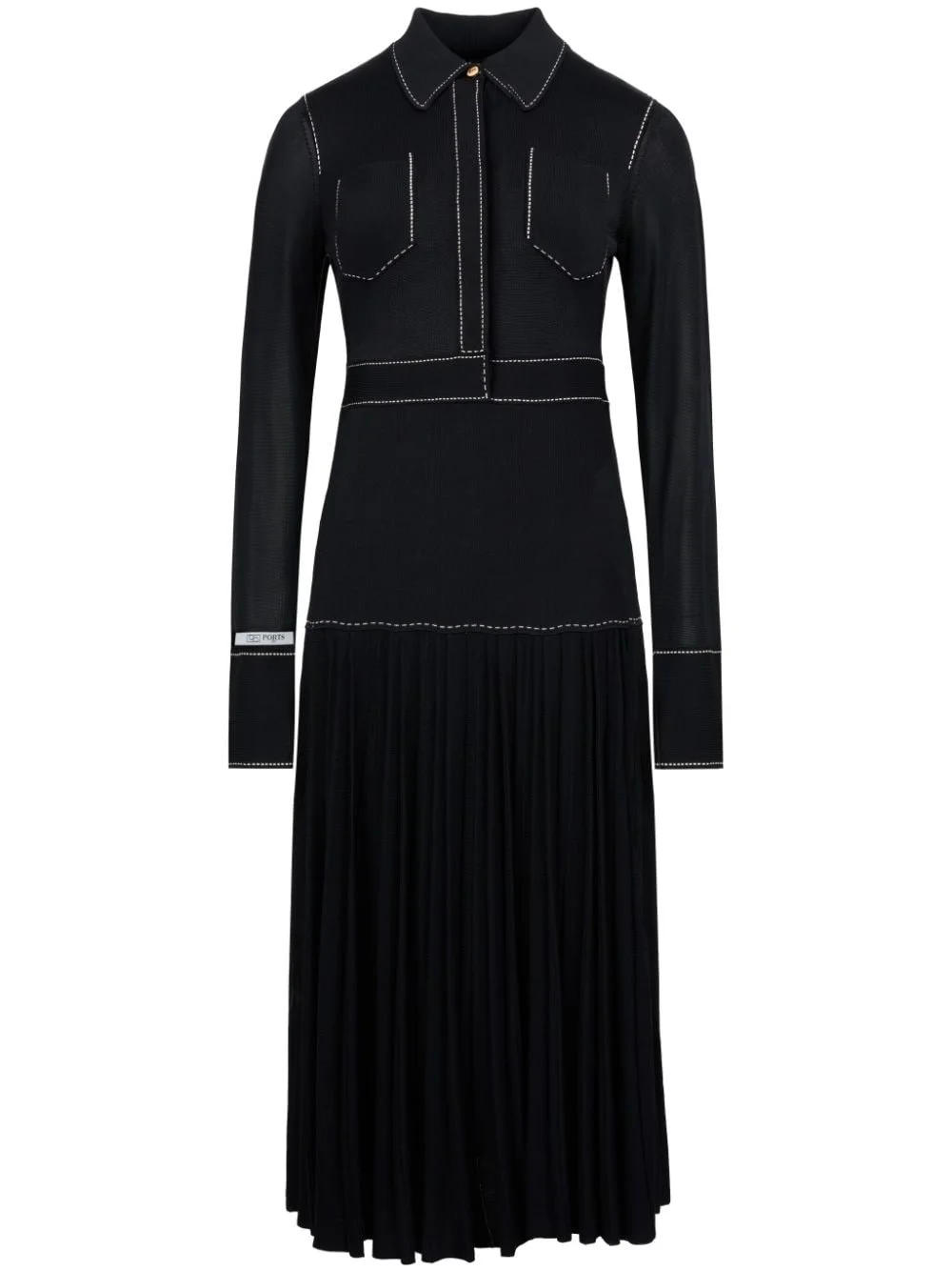 flared dress Highlights - Black - Long sleeves - Classic collar - Contrast stitching - Logo patch at the sleeve - Flared skirt Imported Composition Viscose 100%