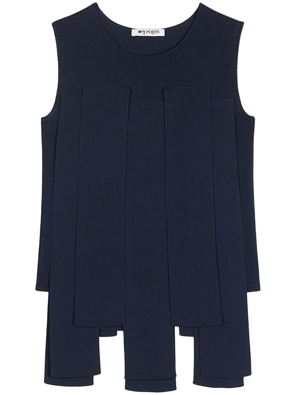 panelled top Highlights - Navy blue - Round neck - Sleeveless - Asymmetric hem Imported Composition Viscose 75%, Polyamide 25%