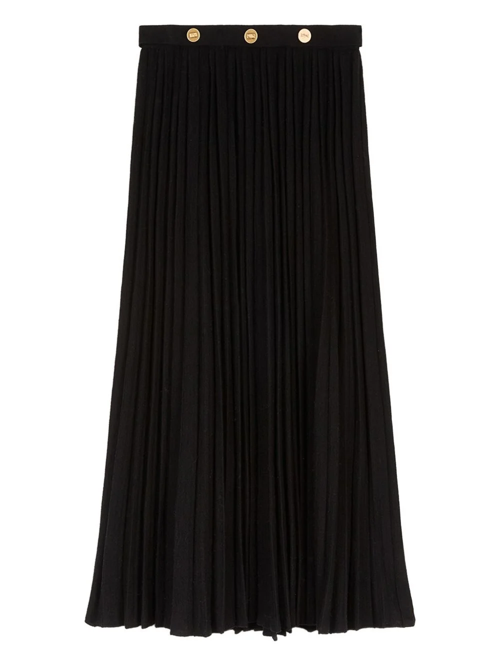 pleated maxi skirt Highlights - Black - Pleated design - Gold-tone buttons Imported Composition Eco Wool 71%, Silk 29% Washing instructions Read Manufacturer Guidelines