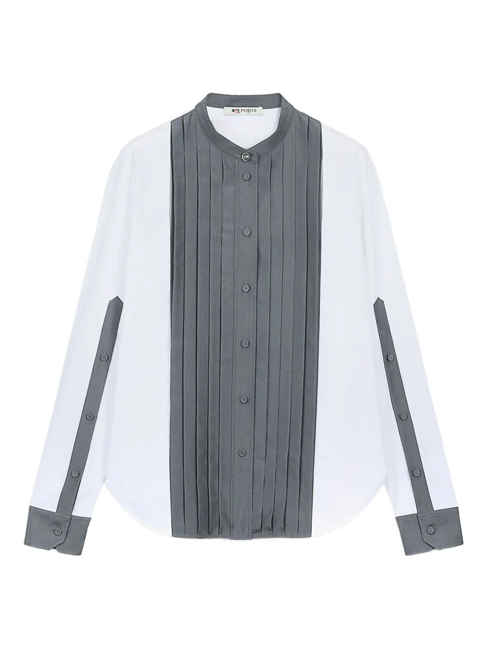 pleated-panel cotton shirt Highlights - White and grey - Pleated panel - Button fastening - Long sleeves - Buttoned cuffs Imported Composition pure cotton 100% Washing instructions Read Manufacturer Guidelines