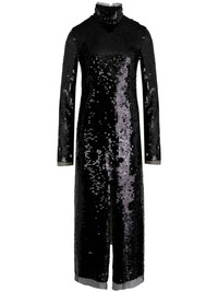 sequinned midi dress Highlights - Black - Sequin embellishment - Funnel neck - Long sleeves - Front slit - Tulle trim - Mid-length Imported Composition Polyester 100%