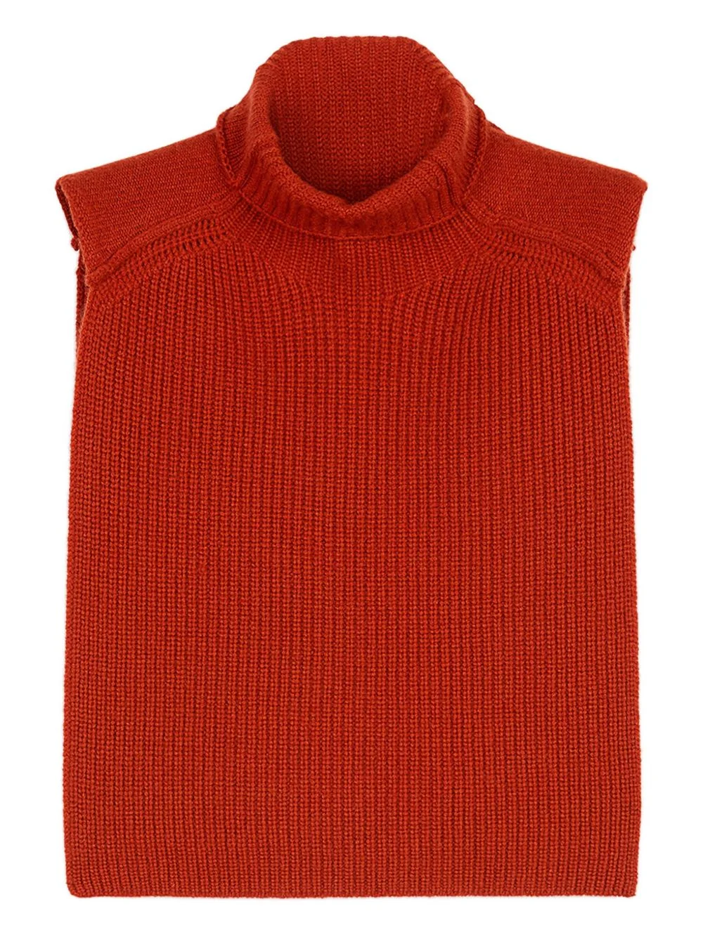 turtleneck cape sweater Highlights - Red - Turtleneck - Sleeveless design - Cape back - Ribbed knit - Cashmere Imported Composition Cashmere 100% Washing instructions Read Manufacturer Guidelines