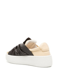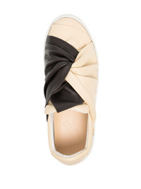 two-tone knot-detail loafers Highlights - Cream beige/dark brown - Lambskin/leather - Slip-on style - Two-tone design - Knot detailing - Round toe - Branded insole - Flat rubber sole Made in Italy Composition Leather 100% SIZE & FIT Measurement HEEL 1.96 in(5 cm) HEIGHT 2.36 in(6 cm) PLATFORM 1.57 in(4 cm)
