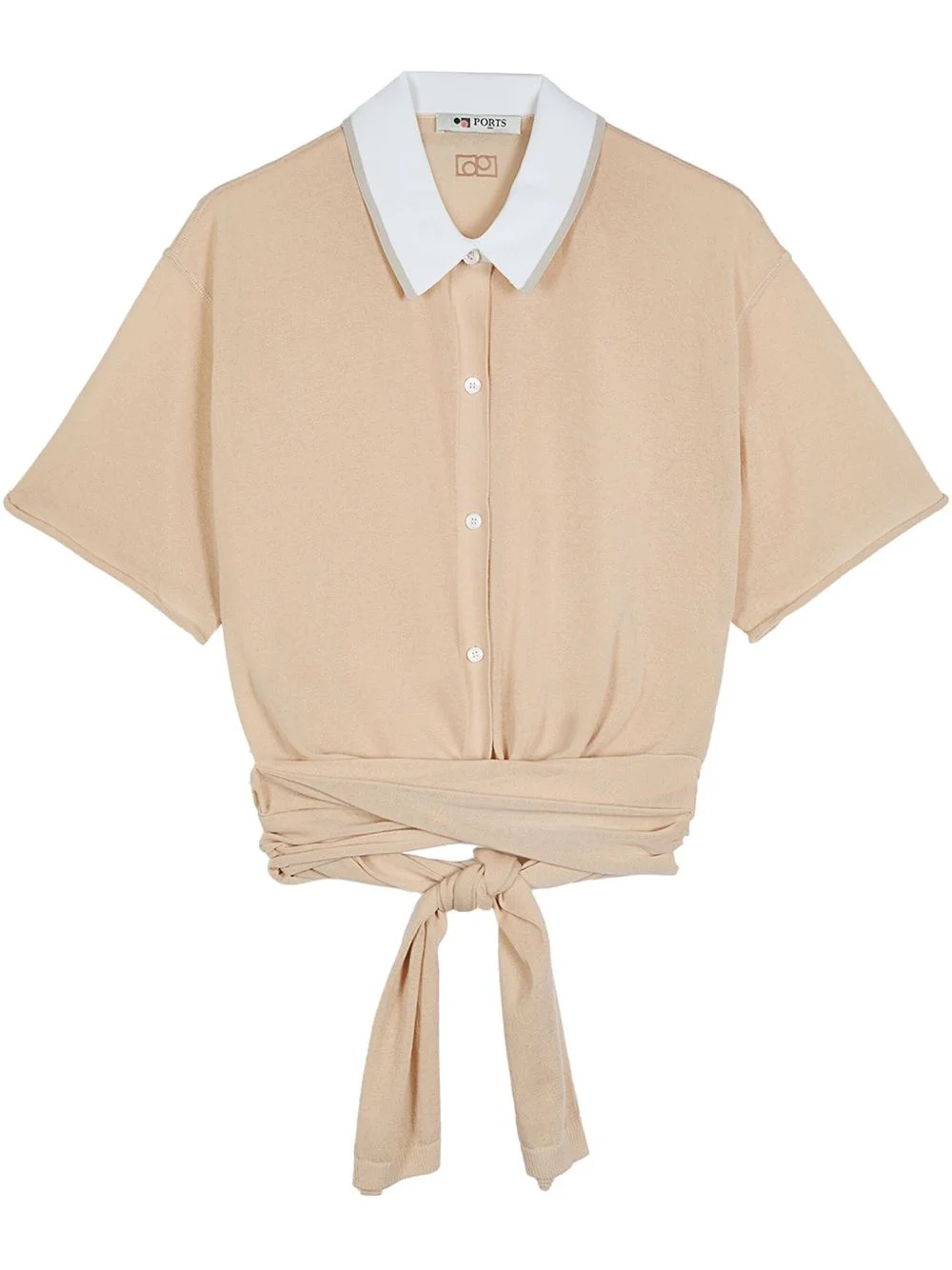wrap polo top Highlights - Sand beige - Front button fastening - Rear tie fastening - Spread collar - Short sleeves Imported Composition Cotton 82%, Polyamide 18%
