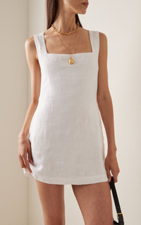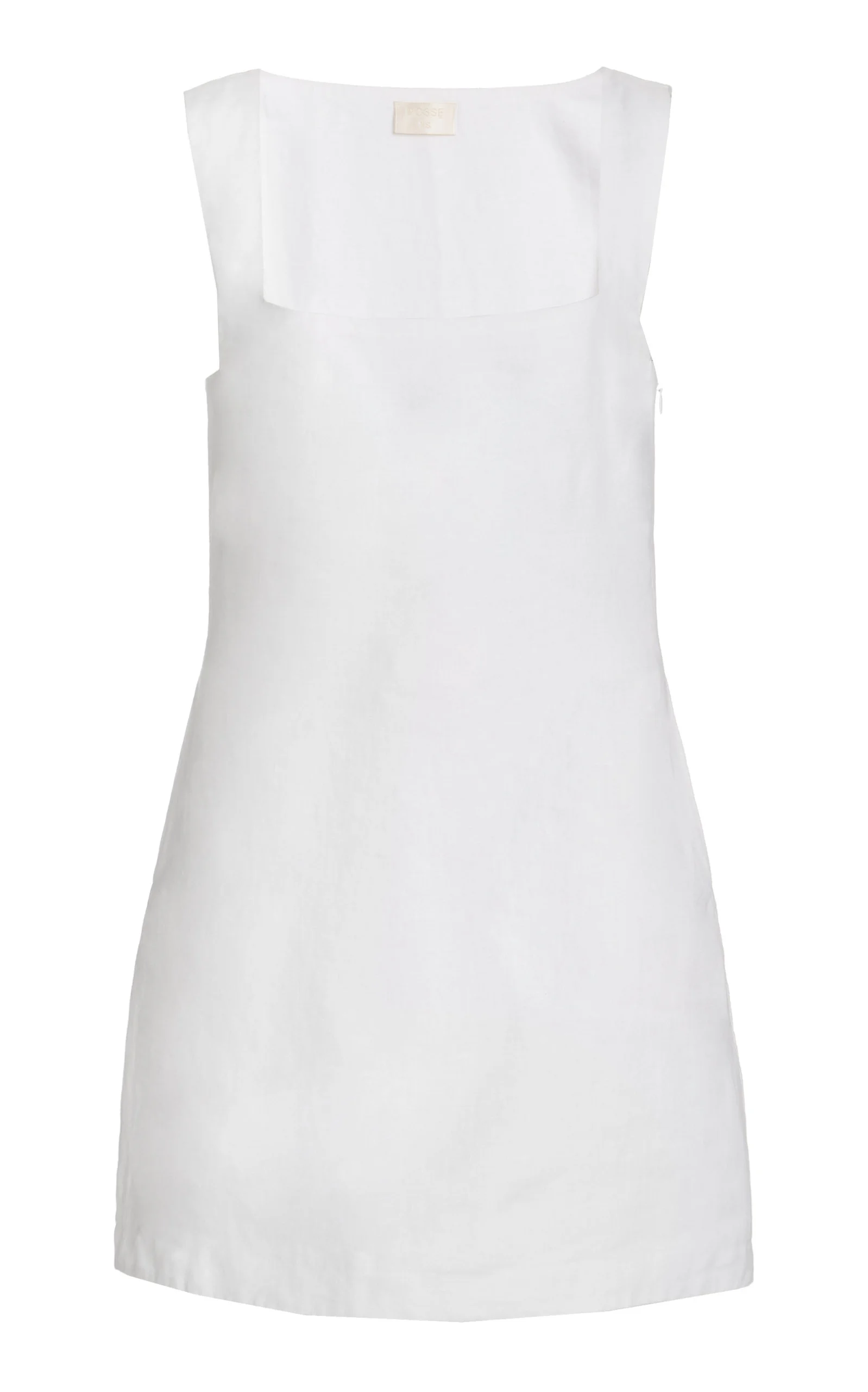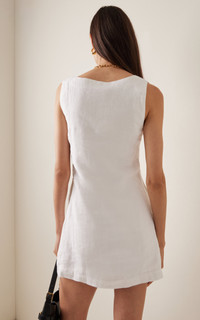 Centered on the principles of slow fashion, Aussie label POSSE is committed to producing the finest fabrications in limited quantities. Each piece is designed to be loved and worn for years to come — to be borrowed, swapped, passed down and cherished across a lifetime. The 'Alice' mini dress is the perfect lightweight style to add to your warm-weather collection. Its sleeveless silhouette is cut from crisp white linen, detailed with a square neckline, dual slit pockets, and a flared skirt—team with leather sandals and a matching mini bag for an easy day look. PRODUCT DETAILS - Designer color: ivory - Zip fastening at side - Composition: 100% linen - Dry clean - Imported SIZE & FIT - Our model is 180cm/ 5'11" and wearing a size Small - Fits true to size, our fit specialist recommends taking your normal size