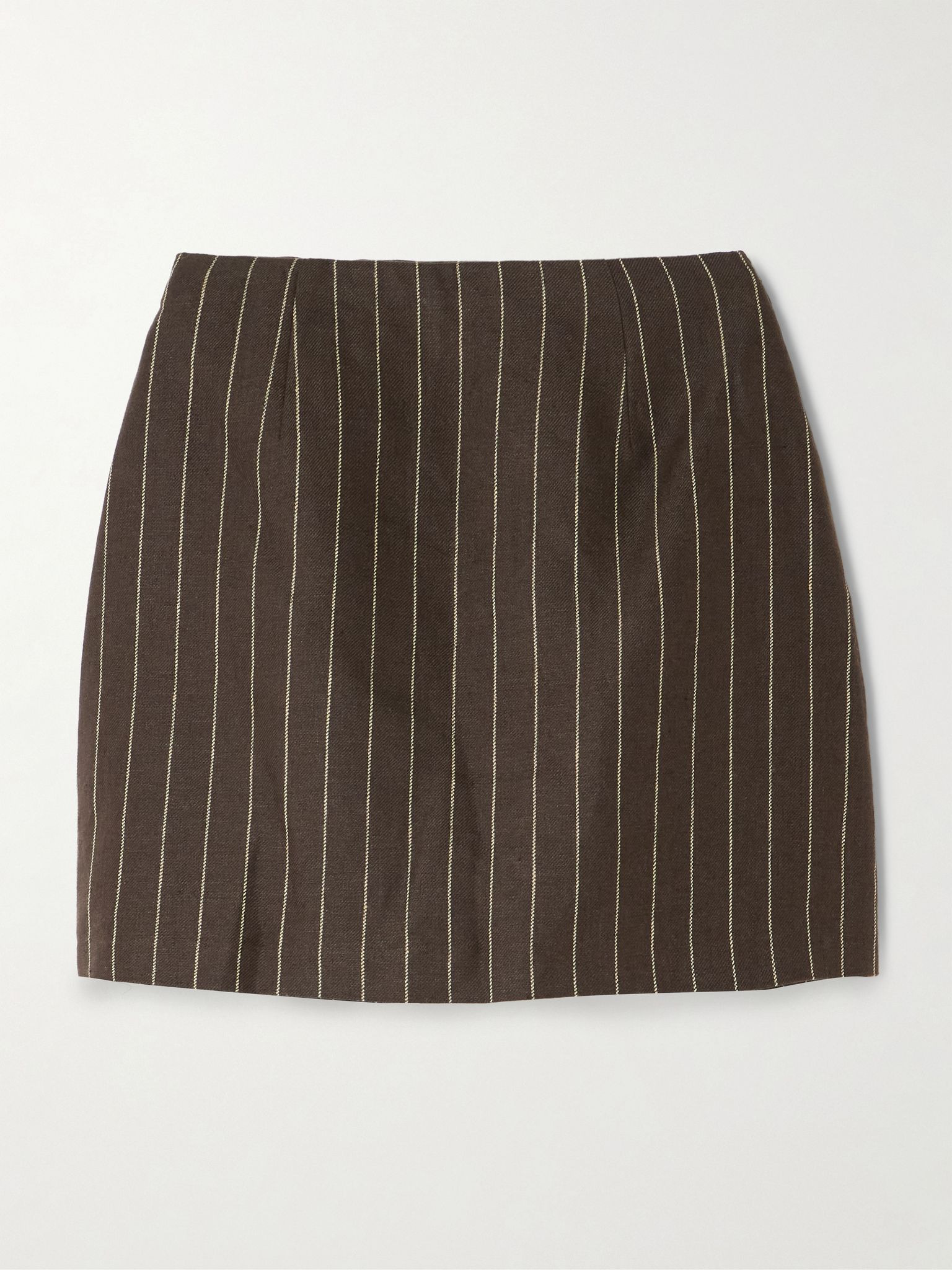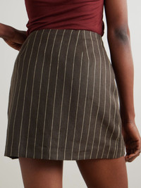 There are so many ways to wear Posse's 'Alice' mini skirt - dress it up with a shirt and the coordinating blazer or go casual with a sweater and flats. It’s made from certified linen-twill and has pinstripes and a classic A-line silhouette. Lower-Impact Materials. This product is made using at least 50% lower-impact materials or ingredients. Find out more about our NET SUSTAIN criteria here. Size & Fit - Fits true to size, take your normal size - Mini-length, designed to be worn at the waist - Mid-weight, non-stretchy fabric - Model is 175cm/ 5'9" and is wearing a size Small Model measurements: - Bust: 81cm/ 32” - Waist: 61cm/ 24” - Hip: 87cm/ 34” Details & Care - Dark-brown and cream linen-twill - Concealed hook and zip fastening at side - 100% linen - Fully lined - Designer color: Chocolate Cream