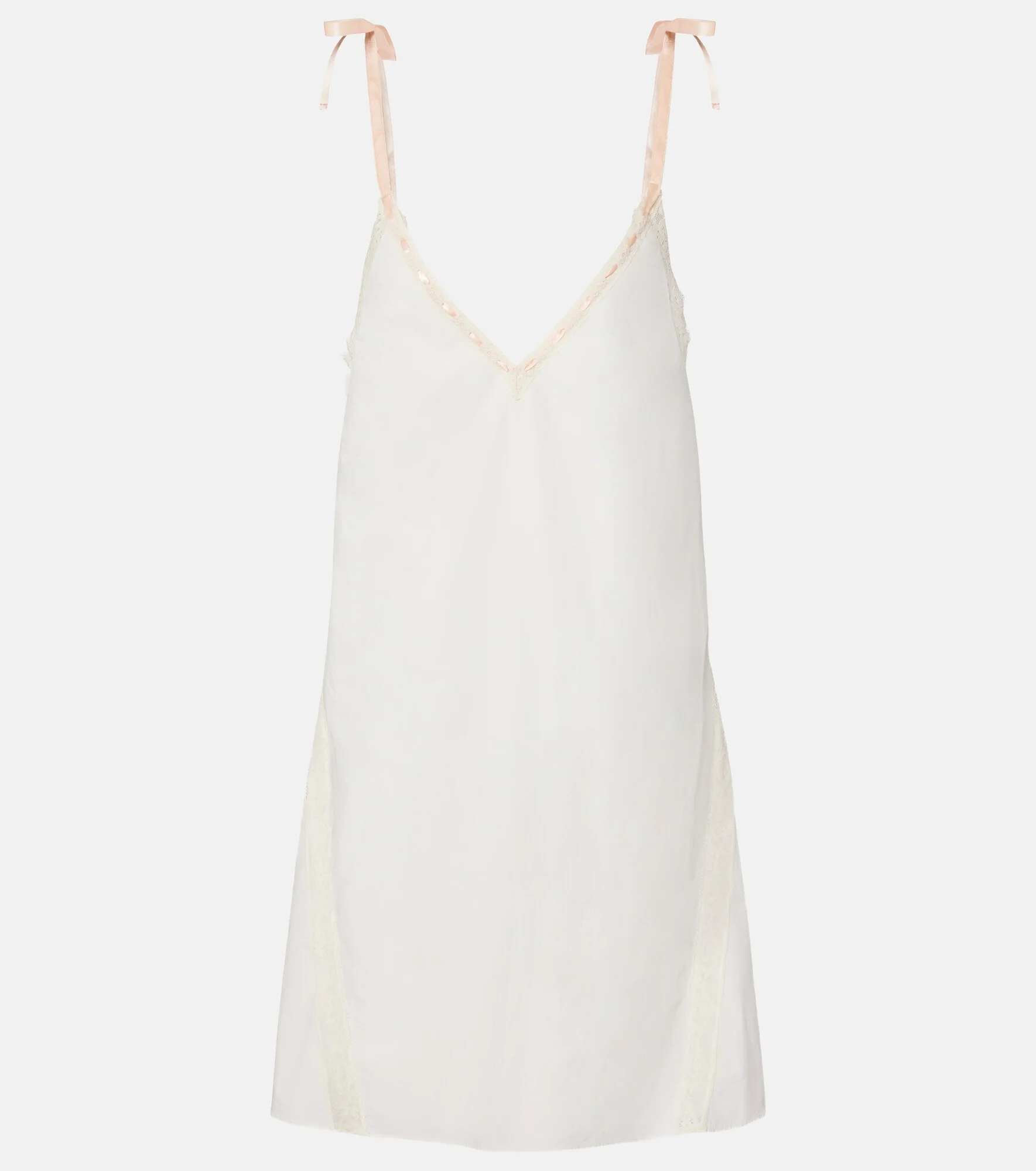 Posse channels effortless elegance through timeless silhouettes and refined simplicity. Expertly made from lightweight cotton, the Alma minidress showcases delicate lace inserts and a subtle ribbon detail along the neckline and shoulder straps. Product Details - Material: 100% cotton - Care instructions: dry clean - Made in China - Color: white - Designer color name: Vintage White - Closure: concealed zipped side - Self-tie shoulder straps - Item number: P01169016