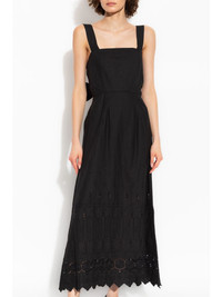 Amelia midi dress Highlights - Black - Bci cotton - Embroidered design - Rear tie fastening - Square neck - Sleeveless - Fitted waistline - Open back - A-line skirt - Scallop hem - Mid-length Imported Composition BCI Cotton 100%