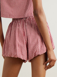 POSSE speaks of "a deep reverence for simplicity and classic modernity" and these cotton-seersucker 'Aurelia' shorts embody that ethos. The high-rise waist and gingham checks nod to styles popular in the ‘50s and ‘60s, but in the freshest possible way. Lower-Impact Materials. This product is made using at least 50% lower-impact materials or ingredients. Find out more about our NET SUSTAIN criteria here. Size & Fit - Fits true to size, take your normal size - High-rise, designed for a relaxed fit - Elasticated at the waist for a comfortable fit - Slightly short in length - Lightweight, non-stretchy fabric - Model is 180cm/ 5'11" and is wearing a size Small Model measurements: - Bust: 76cm/ 30" - Waist: 64cm/ 25" - Hip: 86cm/ 34" Details & Care - Red and cream cotton-seersucker - Concealed hook and zip fastening at back - 100% cotton - Dry clean