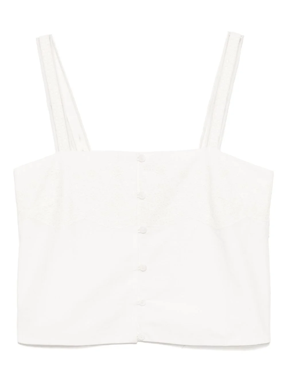 Beryl Cami top Highlights - White - Front button fastening - Adjustable shoulder straps - Square neck Imported Composition Cotton 100% SIZE & FIT Model measurements Height 5 ft 10 in(1.77 m) Bust/Chest 30.7 in(78 cm) Hips 35.82 in(91 cm) Waist 21.25 in(54 cm) FittingInformation Designed for a relaxed fit, this piece allows for comfort and movement when worn The adjustable shoulder straps allow for a preferred fit when worn Made from a midweight non-stretch fabric