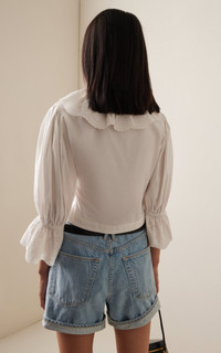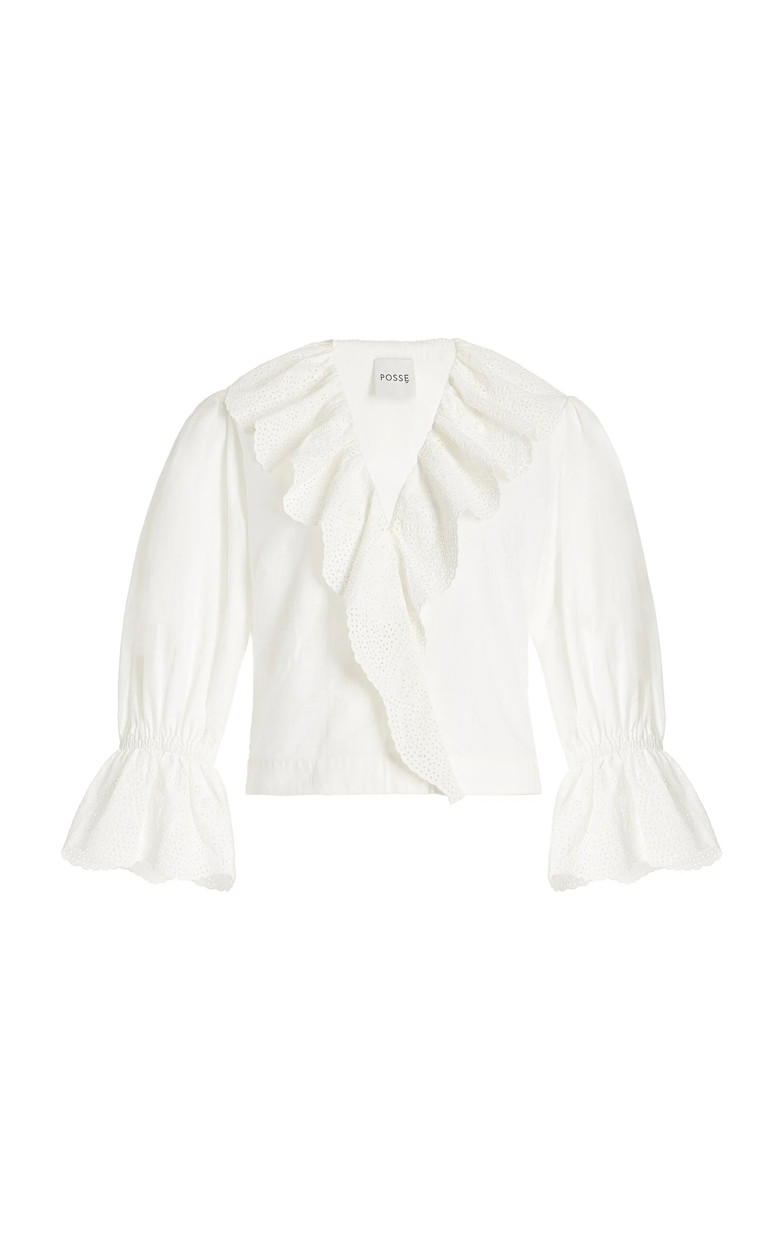 Centered on the principles of slow fashion, Aussie label POSSE is committed to producing the finest fabrications in limited quantities. Each piece is designed to be loved and worn for years to come — to be borrowed, swapped, passed down and cherished across a lifetime. The 'Beryl' blouse is crafted from light, airy cotton into a cropped, relaxed silhouette. Embroidery and a scalloped edges define its ruffled neckline and sleeves. PRODUCT DETAILS - Resort '25 - Slip on - Composition: 100% Cotton - Designer color: Vintage White - Dry clean or machine wash - Imported SIZE & FIT - Designed for a slim fit