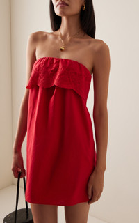 Beryl Embroidered Cotton Mini Dress red