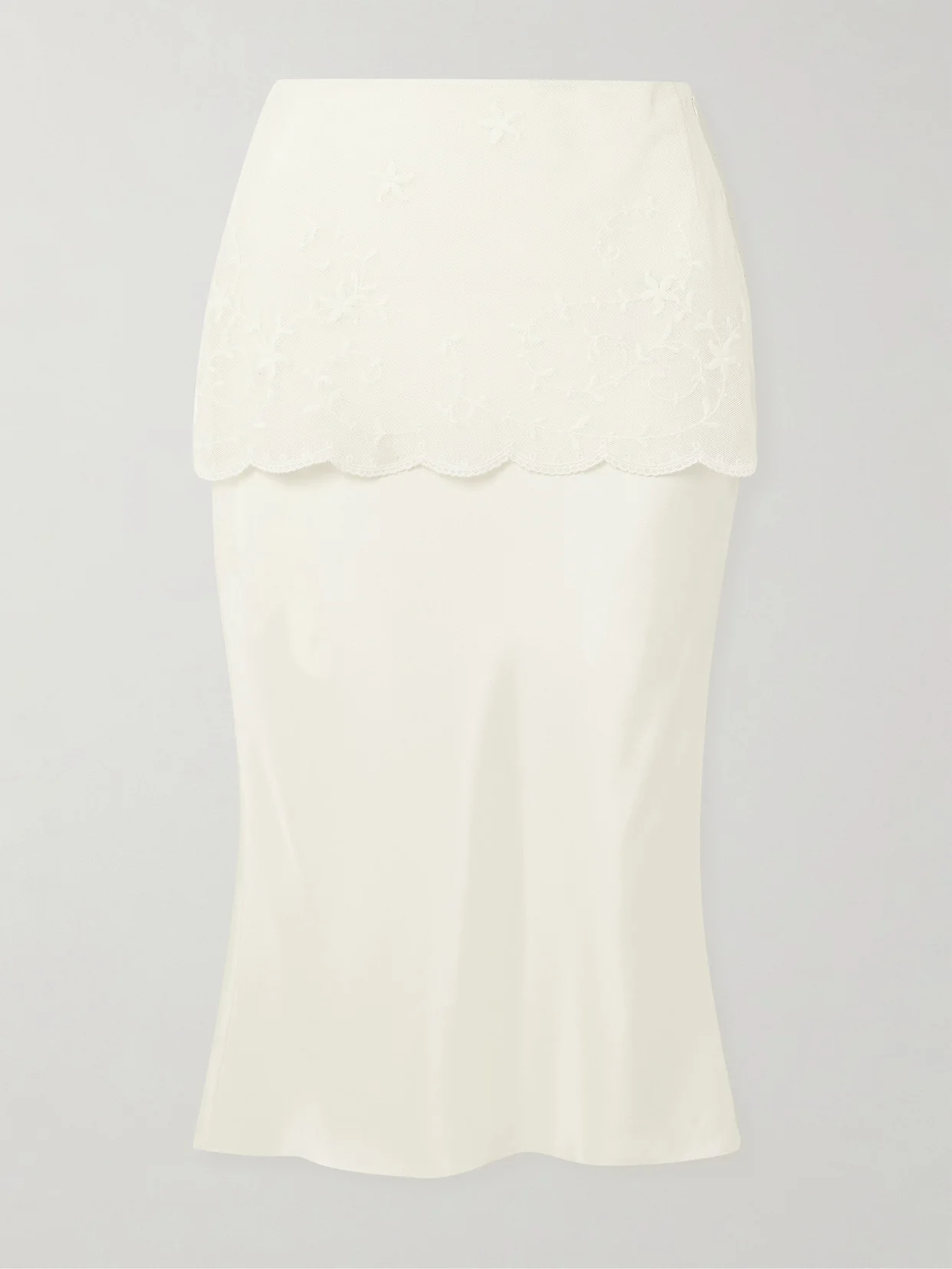 Cove Layered Embroidered Tulle-trimmed Silk-blend Midi Skirt