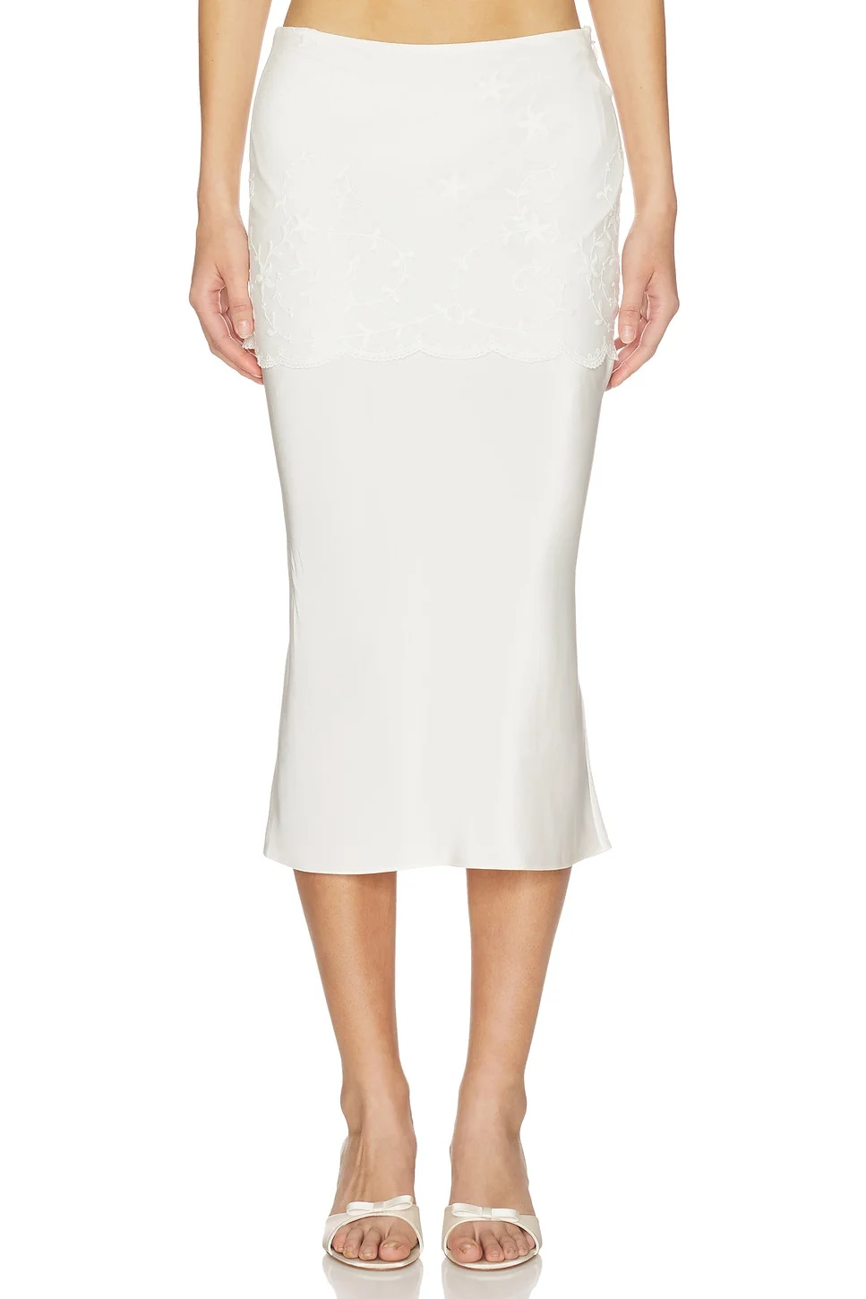 - Self: 92% silk 8% elastane Tulle: 100% cotton - Made in China - Professional dry clean only - Unlined - Hidden side zip with hook and eye closure - Lightweight satin fabric with tulle overlay - Skirt measures approx 30" in length - Revolve Style No. PSSE-WQ26 - Manufacturer Style No. PS1832-PRL