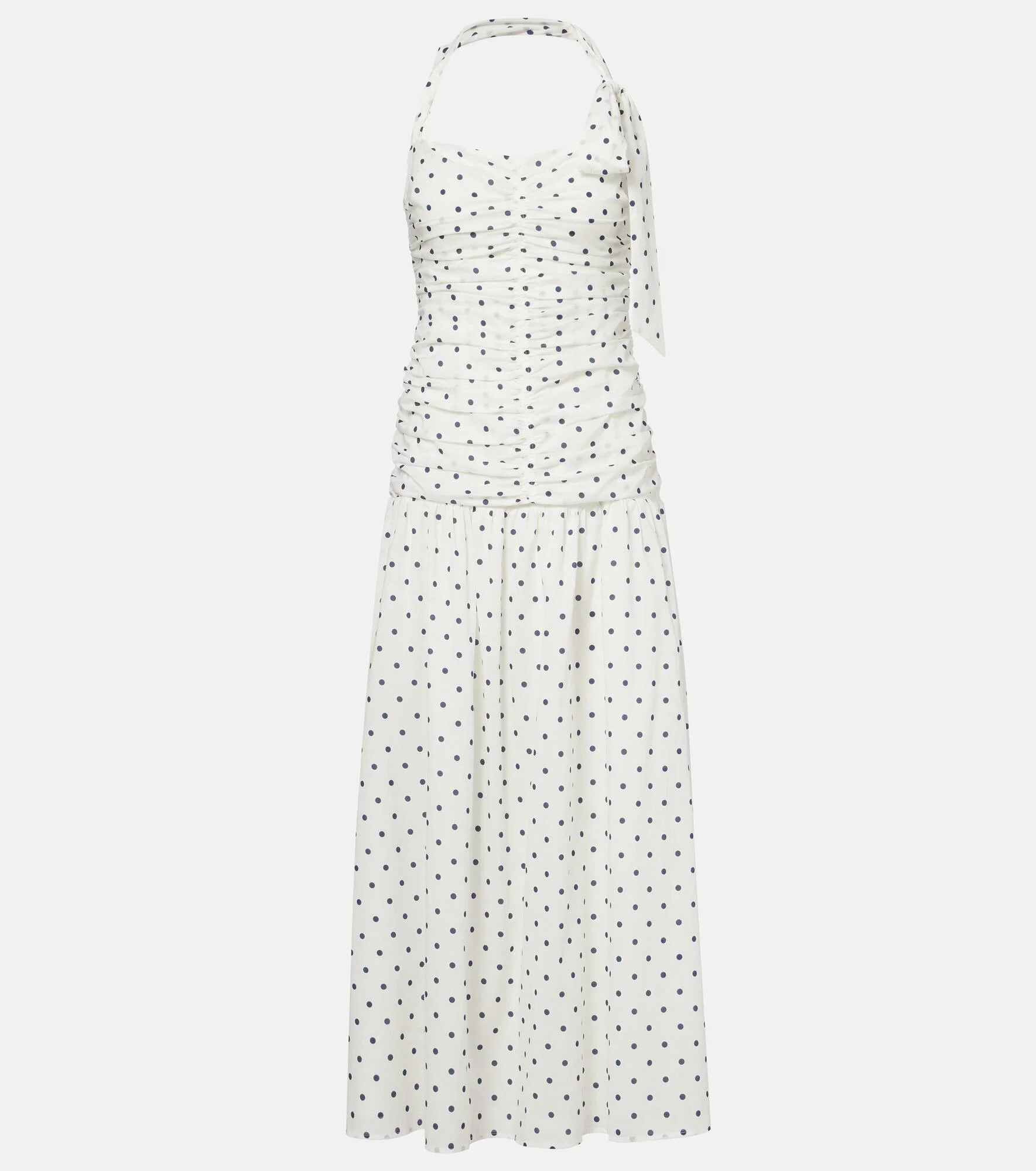 Each Posse piece tells a story of expert craftsmanship and attention to detail, cherishing the timeless over the temporary. Made from a lightweight fabric, the Edie halterneck dress features an all-over polka-dot print. Product Details - Material: 60% Tencel®, 40% cotton - Care instructions: dry clean - Made in China - Color: blue - Designer color name: Cream/Blue Polka Dot - Item color: white, blue - Item number: P01128112 Size & Fit - True to size - Elasticated top - Cinched waist - Non-stretchy fabric - The model seen in the picture is 178cm-5'10" and wearing a size XS