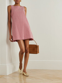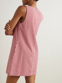 POSSE's mini dress is inspired by shift styles from the '50s and 60s. It's cut for a straight fit from cotton-seersucker patterned with red and cream gingham checks. Lower-Impact Materials. This product is made using at least 50% lower-impact materials or ingredients. Find out more about our NET SUSTAIN criteria here. Size & Fit - Fits true to size, take your normal size - Designed for a loose fit - Mid-weight, non-stretchy fabric - Model is 180cm/ 5'11" and is wearing a size Small Model measurements: - Bust: 76cm/ 30" - Waist: 64cm/ 25" - Hip: 86cm/ 34" Details & Care - Red and cream cotton-seersucker - Concealed hook and zip fastening at back - 100% cotton - Dry clean