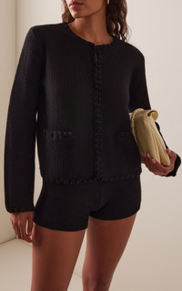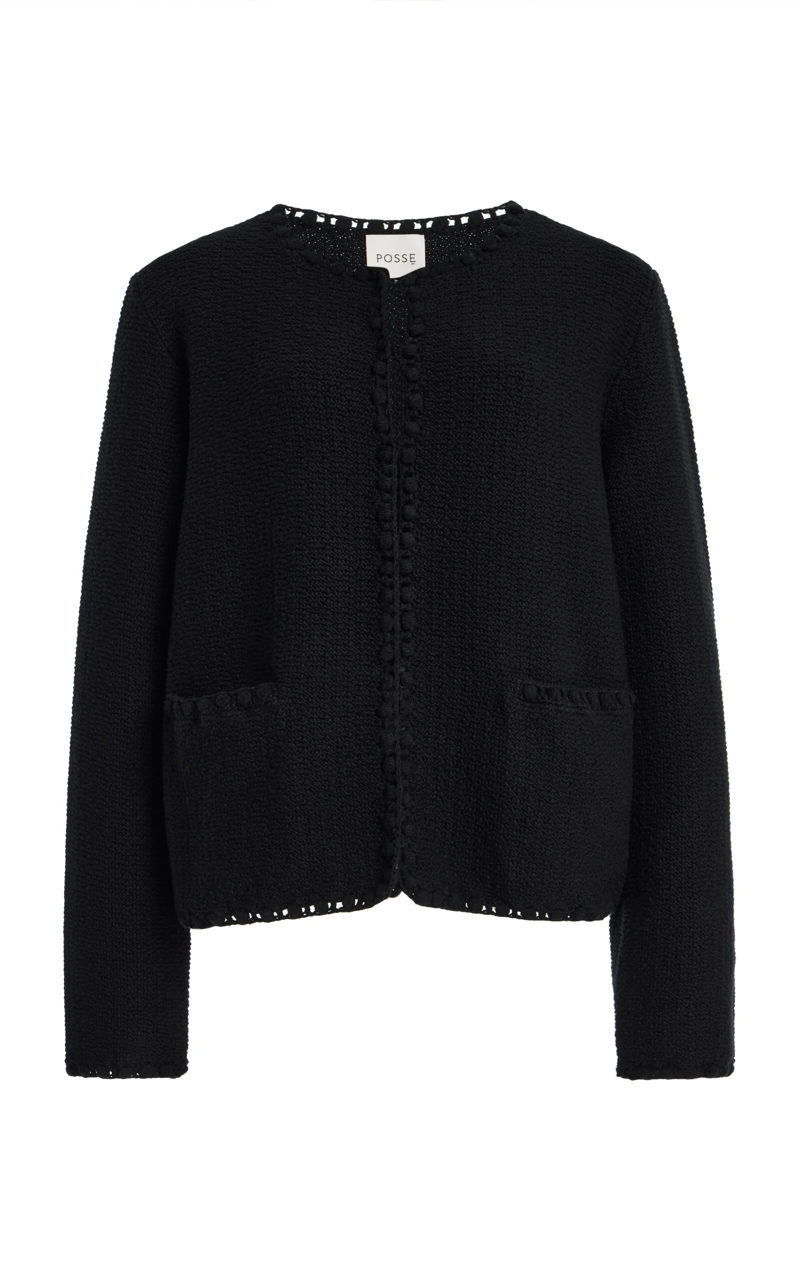 Centered on the principles of slow fashion, Aussie label POSSE is committed to producing the finest fabrications in limited quantities. Each piece is designed to be loved and worn for years to come — to be borrowed, swapped, passed down and cherished across a lifetime. Crafted from soft knit, the Harlan Jacket is traced with intricate crochet detailing throughout. It features an elegant high neckline, front patch pockets and long sleeves. Style yours with the matching Harlan Shorts. PRODUCT DETAILS - Fall '25 - Button fastening - Composition: 72% viscose, 28% polyester - Dry clean - Imported