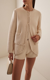 Centered on the principles of slow fashion, Aussie label POSSE is committed to producing the finest fabrications in limited quantities. Each piece is designed to be loved and worn for years to come — to be borrowed, swapped, passed down and cherished across a lifetime. The 'Harlan' knit jacket features delicate crochet detailing. Wear it with the matching vest and shorts. PRODUCT DETAILS - Resort '25 - Button fastening - Composition: viscose, polyester - Designer color: Cream - Dry clean - Imported SIZE & FIT - Designed for a regular fit