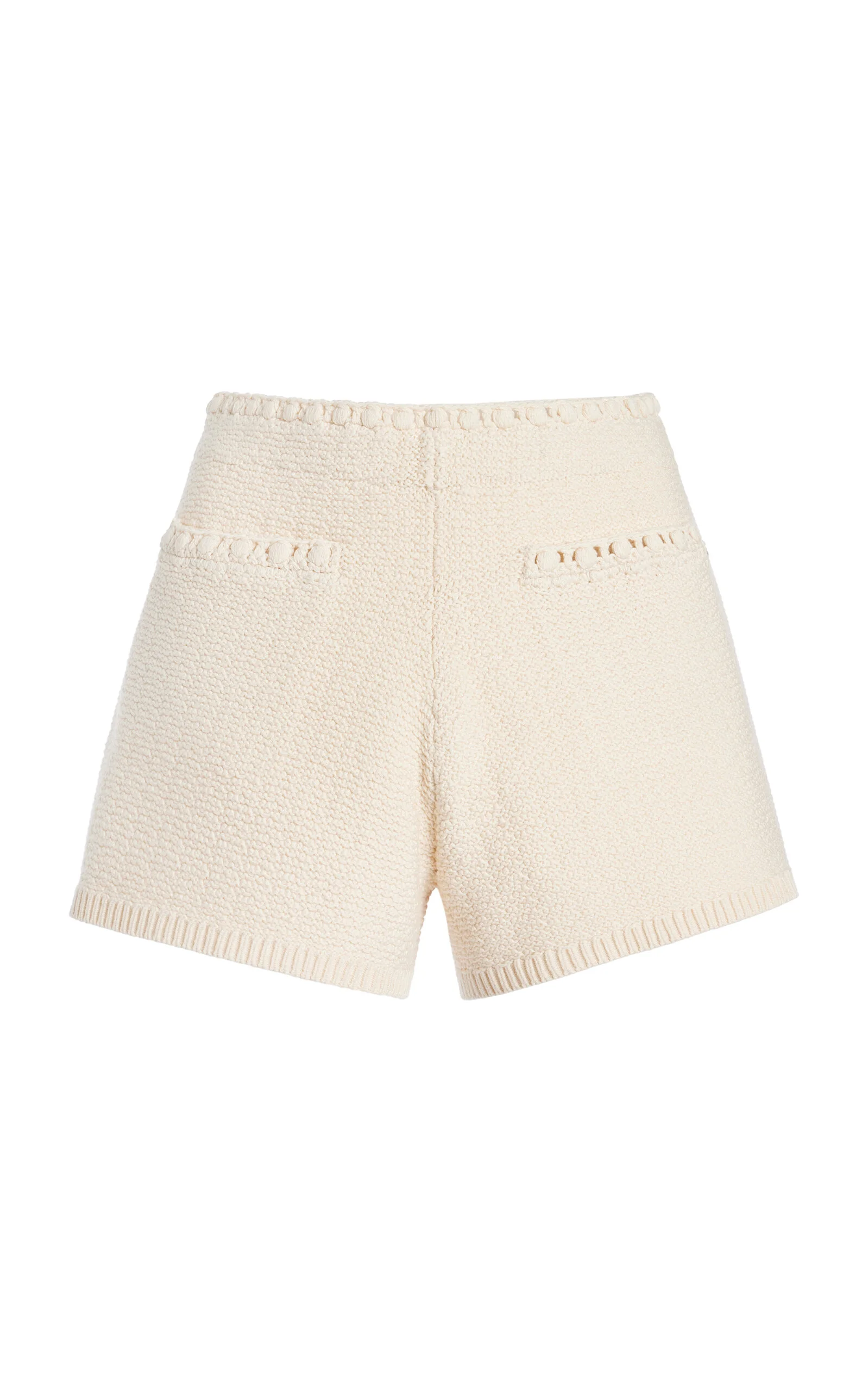 Centered on the principles of slow fashion, Aussie label POSSE is committed to producing the finest fabrications in limited quantities. Each piece is designed to be loved and worn for years to come — to be borrowed, swapped, passed down and cherished across a lifetime. The 'Harlan' knit shorts feature delicate crochet detailing. Wear them with the matching jacket and vest. PRODUCT DETAILS - Resort '25 - Pull on - Composition: viscose, polyester - Designer color: Cream - Dry clean - Imported SIZE & FIT - Designed for a slim fit