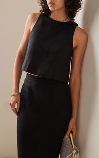Exclusive Poppy Linen Cropped Top black