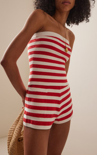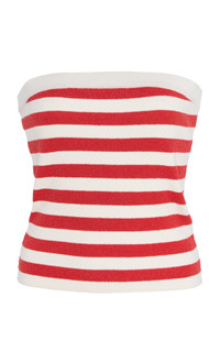 Centered on the principles of slow fashion, Aussie label POSSE is committed to producing the finest fabrications in limited quantities. Each piece is designed to be loved and worn for years to come — to be borrowed, swapped, passed down and cherished across a lifetime. The 'Ari' top a fitted tube silhouette knit from a soft, absorbent terry cloth with sailor stripes. Pair with the matching shorts or maxi skirt. PRODUCT DETAILS - Pre-Fall '25 - Slip on - Composition: 72% viscose, 28% polyester; Detail: 100% polyester - Designer color: Coral/ Ivory - Dry clean - Imported SIZE & FIT - Designed for a slim fit