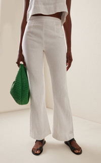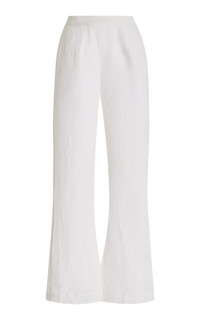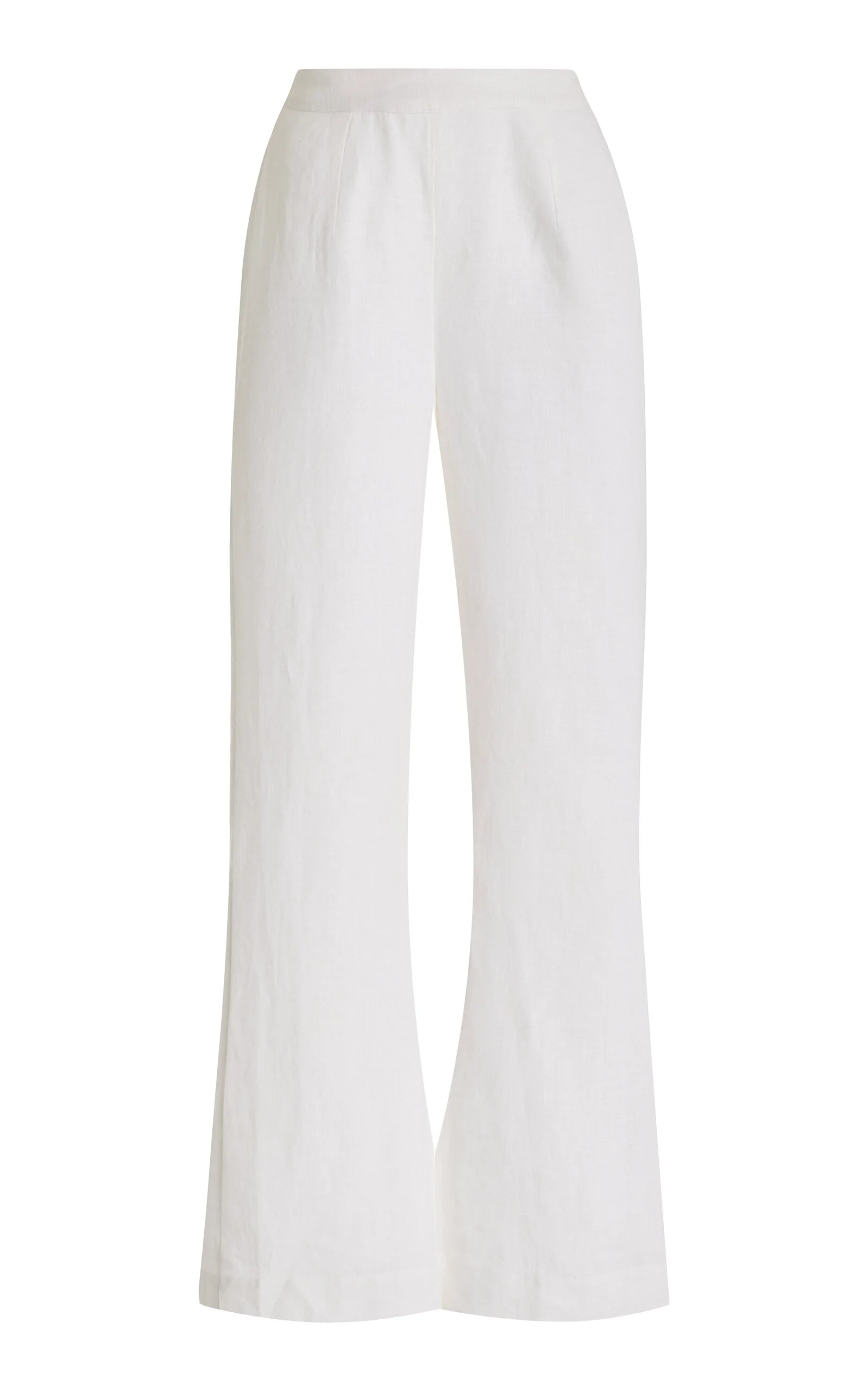 Exclusive Tia High-Waisted Linen Flared-Leg Pants white
