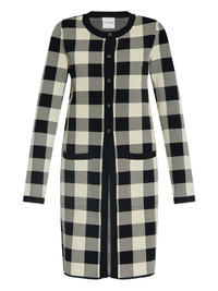 gingham check button cardigan Highlights - Off-white and black - Gingham check pattern - Button front fastening - Long sleeves - Round neck - Patch pockets Imported Composition Viscose 87%, Polyester 13% Washing instructions Read Manufacturer Guidelines