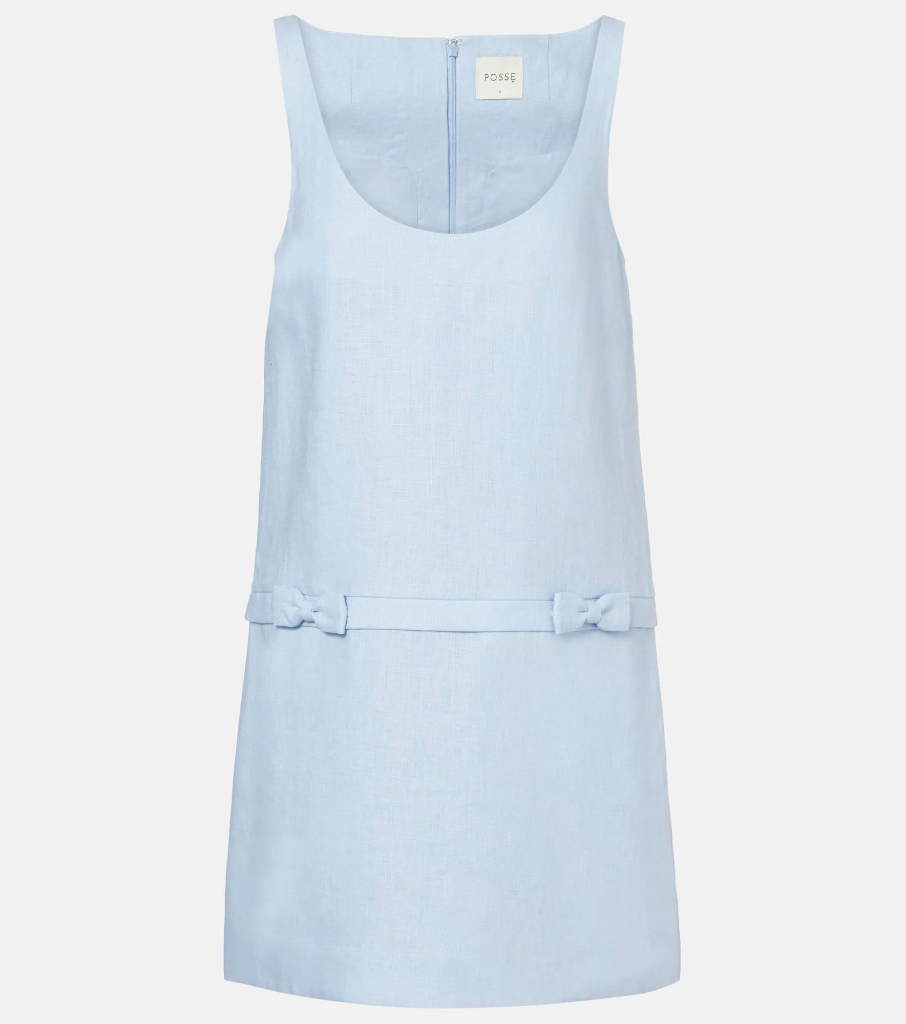 The Harper minidress from Posse makes for a chic statement. This style is made from a light linen fabric with a scoop neckline, a drop waist, and delicate bow details. Product Details - Material: 100% linen - Care instructions: hand wash cold - Made in China - Color: blue - Designer color name: Blue - Item color: blue - Closure: concealed zipped back - Item number: P01124617 Size & Fit - True to size - Straight fit - Non-stretchy fabric - The model seen in the picture is 178cm-5'10" and wearing a size XS