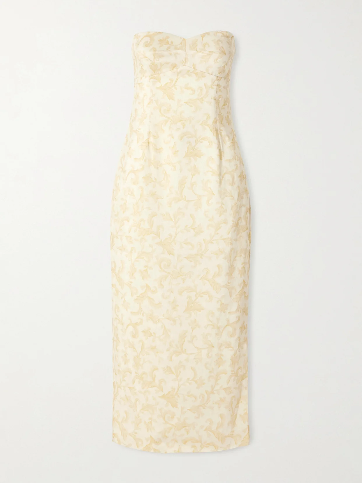 Isla Strapless Floral-print Linen And Silk-blend Midi Dress