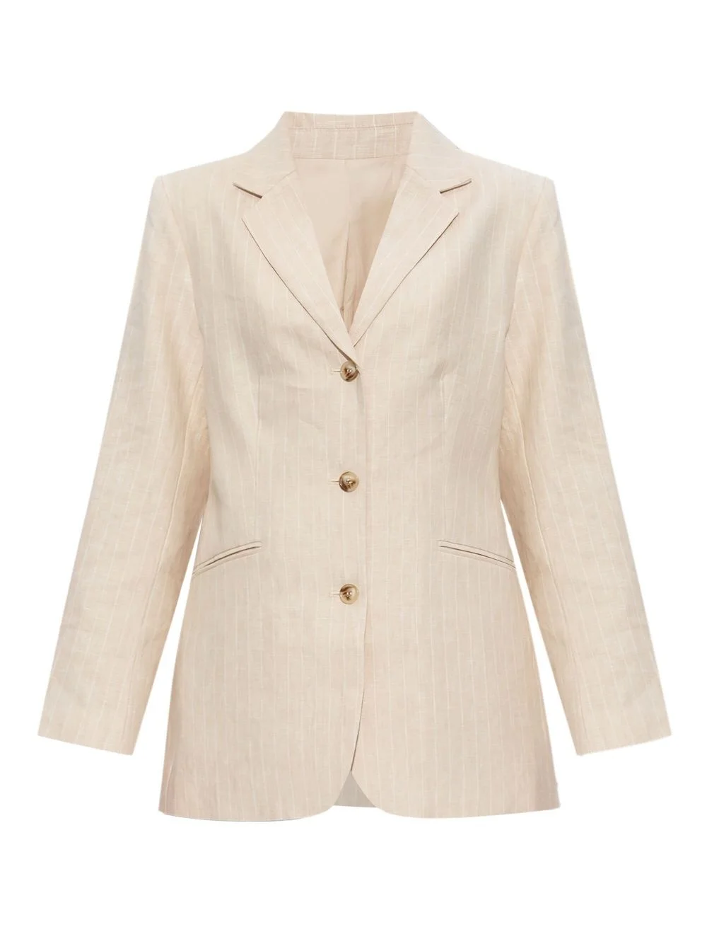 Leon blazer Highlights - Ecru - Front button fastening - Two front jetted pockets - Buttoned cuffs - Long sleeves Imported Composition Linen/Flax 100% Washing instructions Read Manufacturer Guidelines