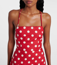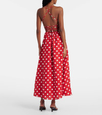 Create elegant warm-weather ensembles around the Lori maxi dress from Posse. Made from breathable and lightweight linen, this style is defined by a square neckline, a classic polka-dot print, and an open back for a sophisticated finish. Product Details - Material: 100% linen - Care instructions: dry clean - Made in China - Designer color name: Polka Dot - Item color: red - Lining: 100% cotton - Item number: P01058183 Size & Fit - True to size - Low back - Cinched waist - Elasticated waist - Non-stretchy fabric - The model seen in the picture is 178cm-5'10" and wearing a size XS