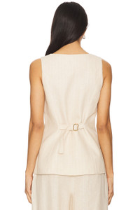 - Self: 100% linen Lining: 100% cotton - Dry clean only - Front button closure - Side welt pockets - Adjustable buckle at back - Square neckline - Midweight linen fabric - Item not sold as a set - Revolve Style No. PSSE-WS28 - Manufacturer Style No. PS1372-BGE