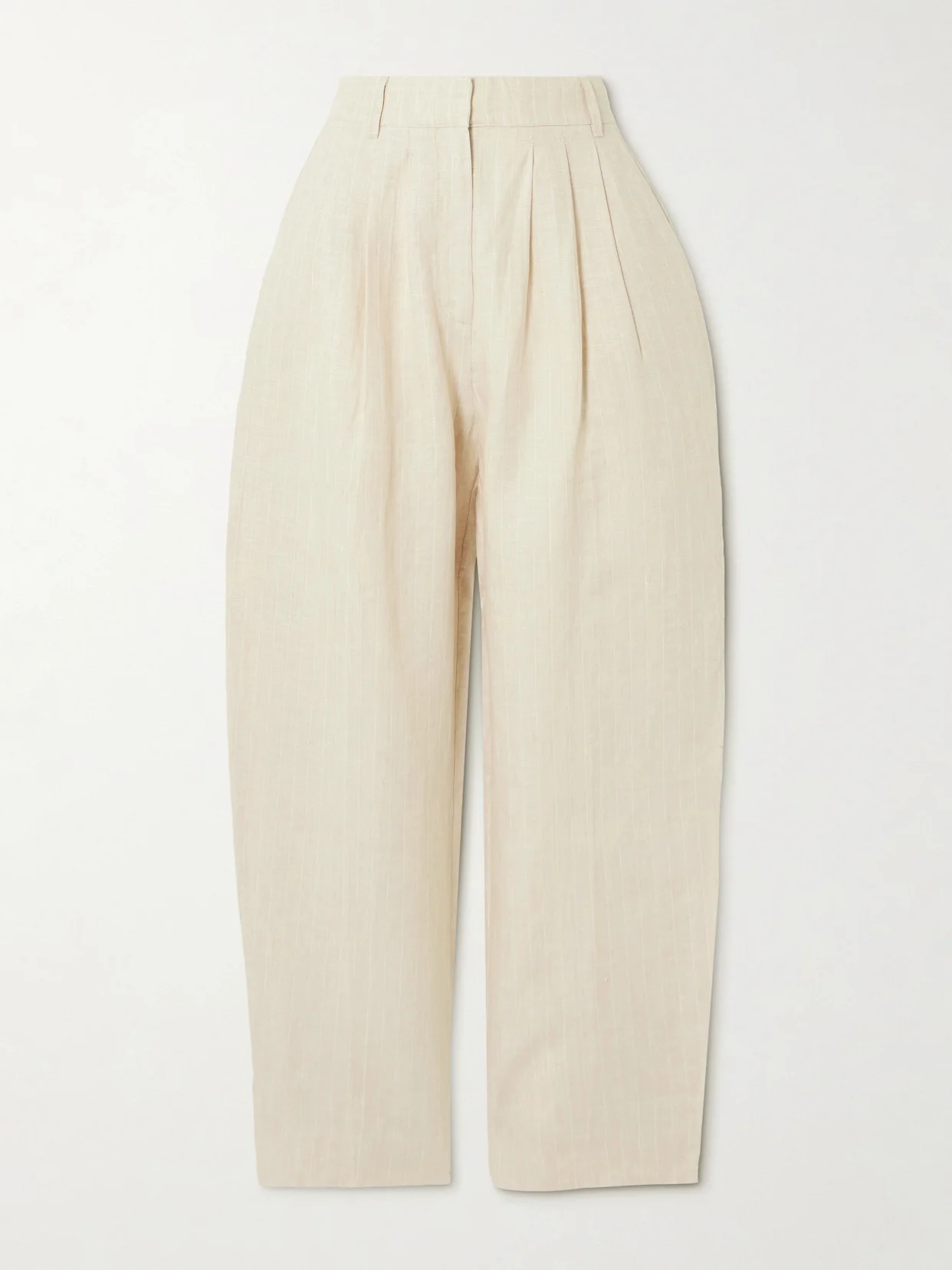 Lucille Pleated Pinstriped Linen Straight-leg Pants