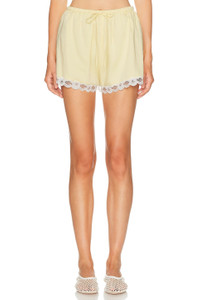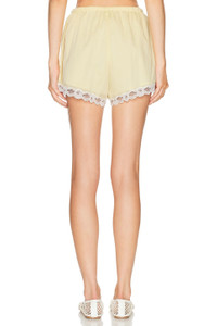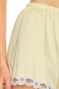 Details - Self 1: 60% tencel, 40% cotton - Self 2: 96% nylon, 4% elastane - Lining: 100% cotton - Dry clean only - Elasticized waistband with drawstring closure - Poplin fabric with lace trim - Made in China - Our Style No. PSSF-WF13 - Manufacturer Style No. PS1723-LIM