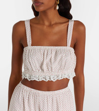 Posse embodies timeless elegance with a focus on effortless silhouettes, refined craftsmanship, and enduring design. Crafted from pure cotton, the Marlowe crop top features all-over polka dots and an elasticated hemline finished with delicate lace. Product Details - Material: 100% cotton - Care instructions: machine wash at 30 degrees - Made in India - Designer color name: Cream & Red Polka Dot - Item color: white, red - Lining: 100% cotton - Lace: 100% nylon - Adjustable shoulder straps - Hem: elasticated, scalloped - Item number: P01124623 Size & Fit - True to size - Cinched waist - Elasticated hem - Non-stretchy fabric - Cropped - The model seen in the picture is 178cm-5'10" and wearing a size XS
