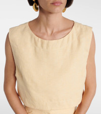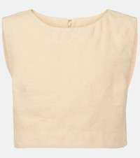 Crafted from pure linen, the Martina crop top from Posse showcases a sleeveless style. This design features a cropped length and is cut to a straight silhouette. Product Details - Material: 100% linen - Care instructions: dry clean - Made in China - Designer color name: Dusty Citron - Item color: yellow - Lining: 100% cotton - Closure: invisible zipper - Item number: P01058180 Size & Fit - True to size - Straight fit - Non-stretchy fabric - Cropped - The model seen in the picture is 178cm-5'10" and wearing a size XS