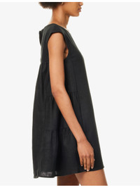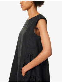 PRODUCT DETAILS - Posse linen mini dress - 100% linen; lining 100% cotton - Concealed button fastenings at back - Relaxed fit, scoop neck, sleeveless, high-waist, two slip pockets at front, ruffled at sides, fully lined, flared hem - Specialist dry clean only - True to size - Size small: length 33in / 84cm - Model is 5ft 10in/1.78m and wears a size small - Midweight, stretchy Ref: R04469774