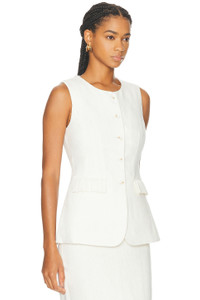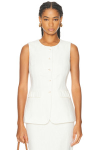 Details - Self: 100% linen - Lining: 100% cotton - Dry clean only - Front button closure - Front faux ruffle flap pockets - Midweight linen fabric - Item not sold as a set - Made in China - Our Style No. PSSF-WS31 - Manufacturer Style No. PS1335-CRM