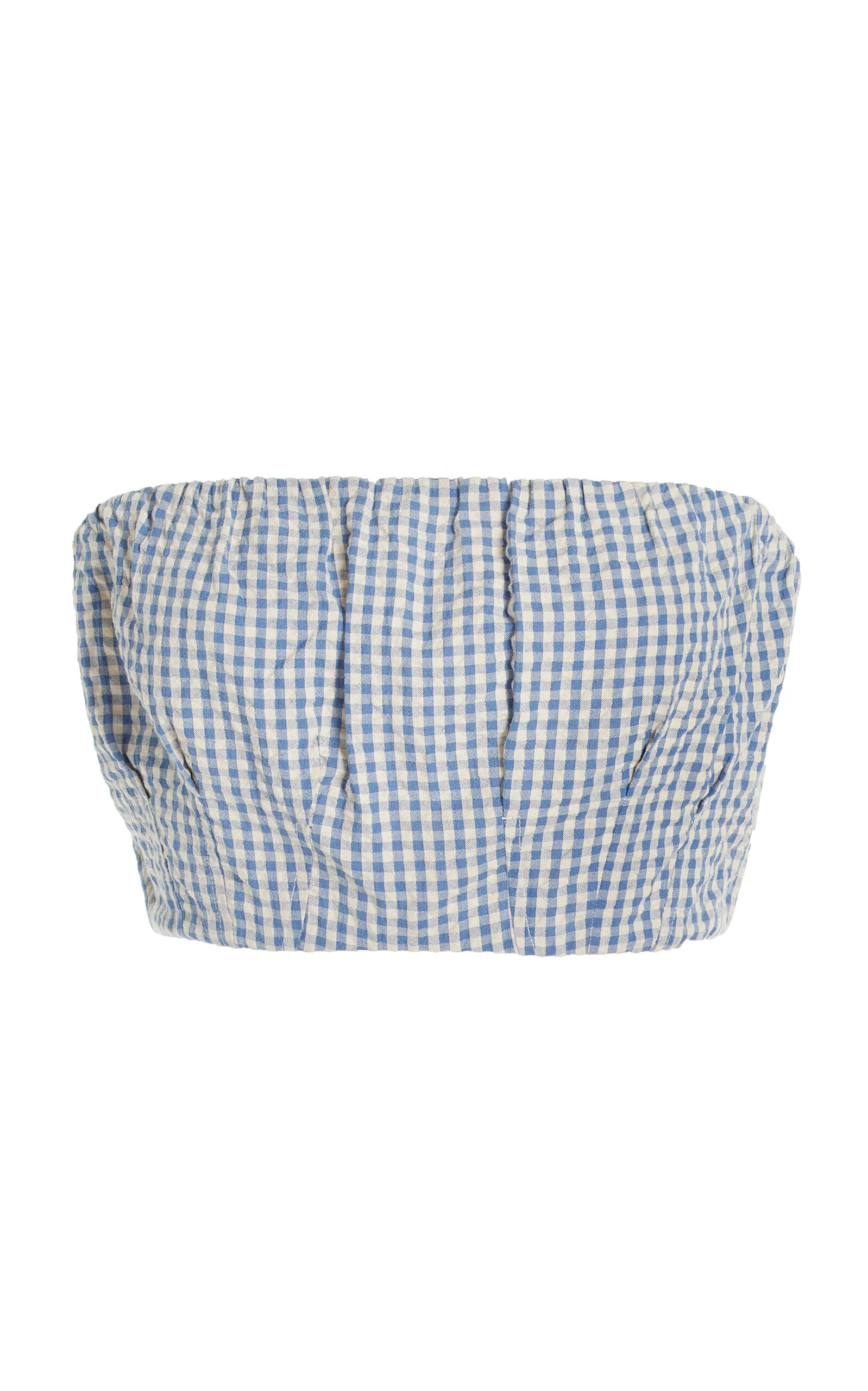 Centered on the principles of slow fashion, Aussie label POSSE is committed to producing the finest fabrications in limited quantities. Each piece is designed to be loved and worn for years to come — to be borrowed, swapped, passed down and cherished across a lifetime. The 'Mira' crop top is cut from crisp cotton and shaped into a ruched, strapless silhouette. Pair it with denim or its matching skirt. PRODUCT DETAILS - Resort '25 - Zip fastening along back - Composition: 100% Cotton - Designer color: Blue/Cream Gingham - Dry clean or machine wash - Imported SIZE & FIT - Designed for a slim fit